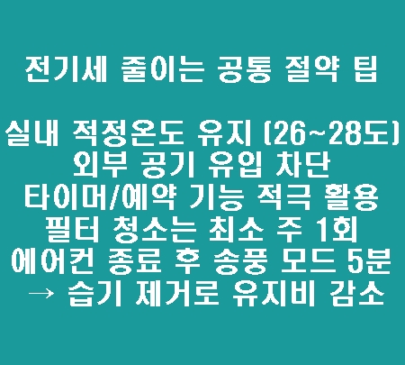 어떤 에어컨을 사용하든, 전기세를 아끼는 핵심은 운용 습관입니다.