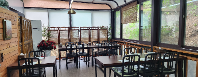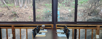 밖의 전경도 다 볼 수 있는 통유리 찬찬히 고향의 흙냄새 맡으며~~